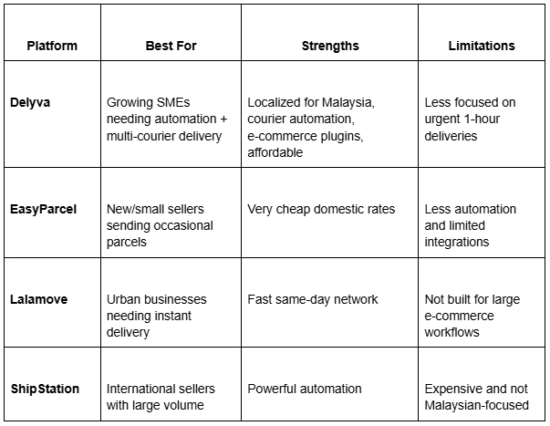 In the Malaysian market, the combination of affordability, automation, and courier flexibility is what makes Delyva stand out.