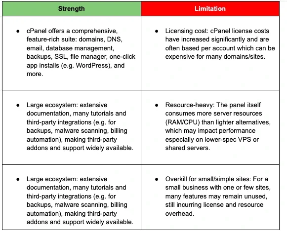 Finally, it dictates Cost, Resources & Long-Term Scalability, directly impacting the total cost of ownership (TCO) through licensing fees and resource consumption. Choosing a panel that is lightweight or cost-effective is essential for SMEs and startups to ensure they can scale gracefully as their traffic and client base grow.