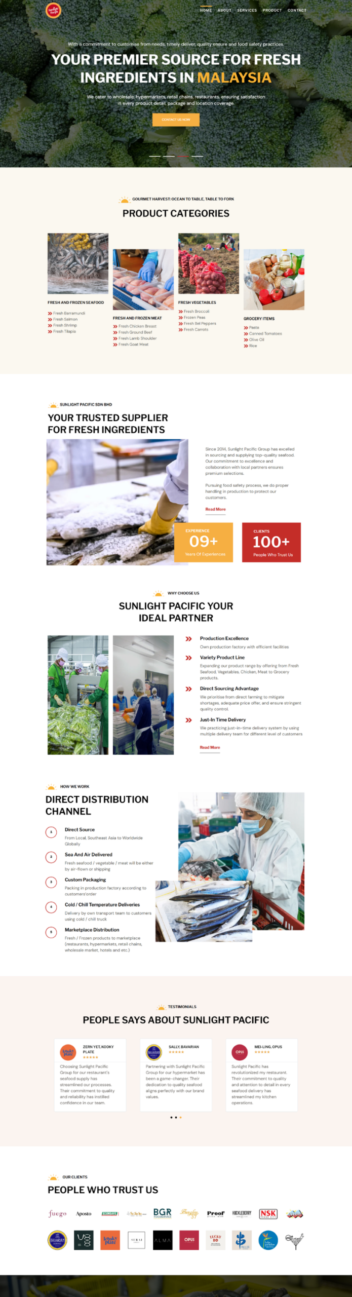 Since 2014, Sunlight Pacific Group has excelled in sourcing and supplying top-quality seafood. Our commitment to excellence and collaboration with local partners ensures premium selections. Pursuing food safety process, we do proper handling in production to protect our customers.