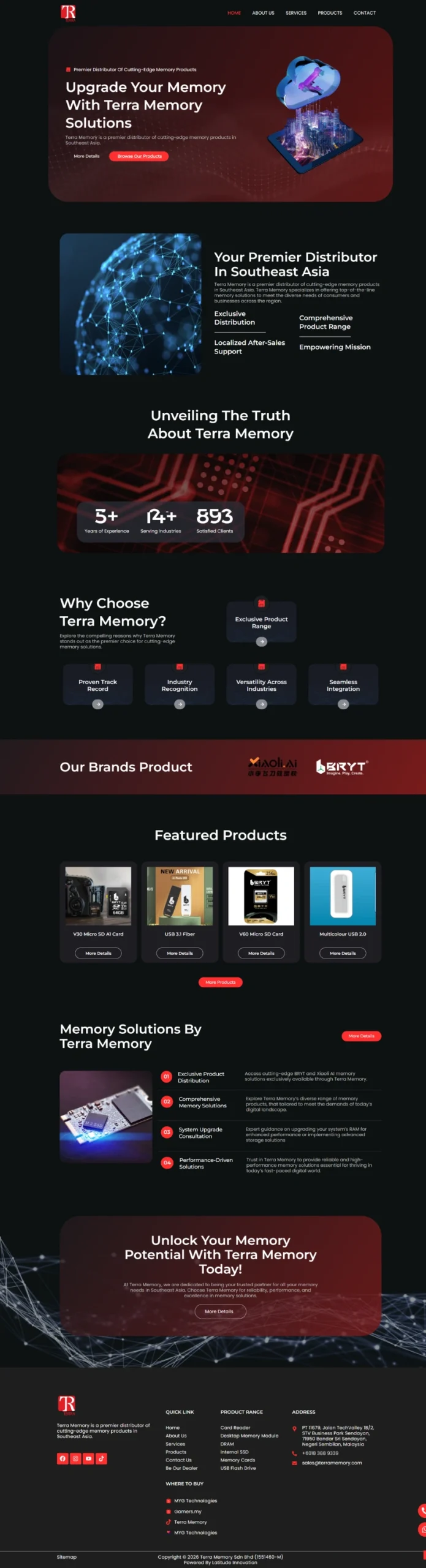 Web Design ShowcasePortfolio Terra Memory Terra Memory, a leading distributor in Southeast Asia, provides top-tier memory products for consumers and businesses. Category: 5 Pages Profile WebsiteTag: 5 Pages Profile Website, SEO View Website