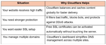 Cloudflare acts as an optional performance and security layer — not a core component of your website setup. If you want your website to load faster, stay more secure, and handle high traffic smoothly, Cloudflare is worth enabling. But if your site is small or your server already has strong security and caching in place, your website will function just as well without it.