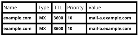 The MX Record (Mail exchange) tells email systems where to deliver your company’s emails. Without it, messages to info@example.com wouldn’t know where to go.