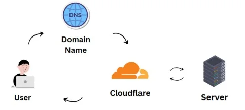 – Before doing that, it filters harmful requests, adds SSL security, and speeds up loading using its CDN cache. - Server → Cloudflare → User