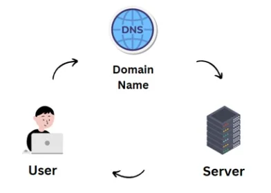 – The user searches for your domain. The DNS looks up your nameservers. - Domain Name → Server